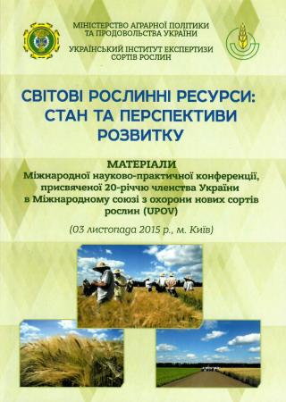 Світові рослинні ресурси: стан та перспективи розвитку: матеріали Міжнародної науково-практичної конференції, присвяченої 20-річчю членства України в Міжнародному союзі з охорони нових сортів рослин (UPOV) (м. Київ, 3 листопада 2015 р.)
